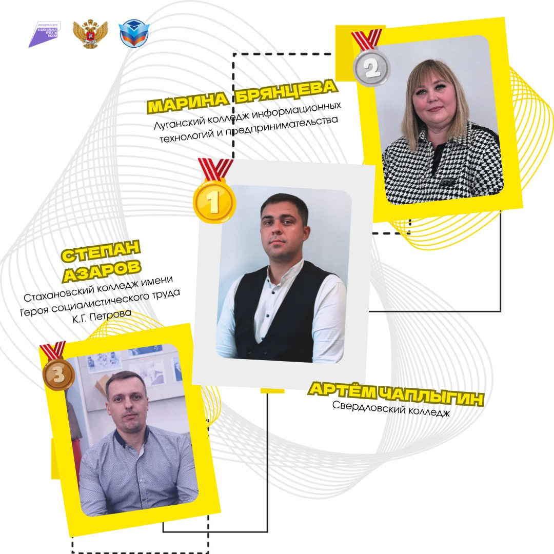 III место – Степан Азаров, преподаватель Стахановского колледжа им. К.Г. Петрова.II место – Марина Брянцева, преподаватель Луганского колледжа информационных технологий и предпринимательства.