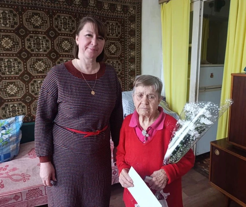 Заместитель главы местной Администрации Елена Беседина навестила и вручила Лидии Семеновне персональное поздравление с 96-летием от Президента Российской Федерации Владимира Путина.