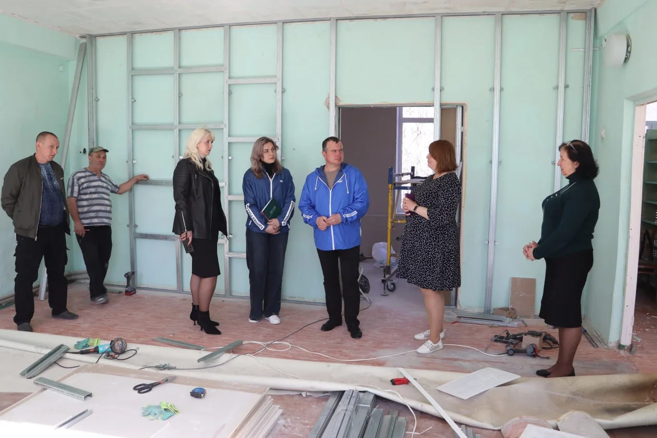 Сейчас в помещениях идут активные строительные работы: демонтированы старые конструкции, монтируются стеновые каркасы, обновляется электропроводка и освещение.