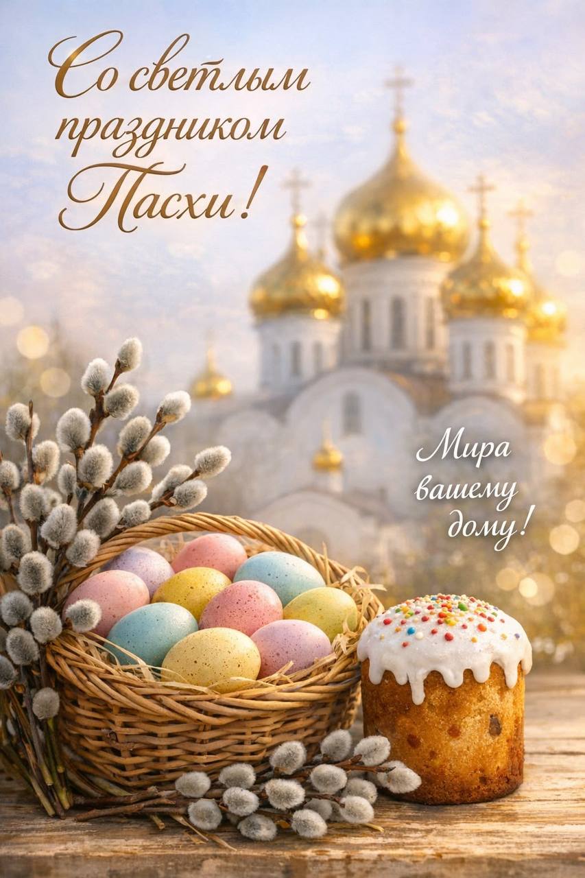 В этот благословенный день желаю каждому из вас душевного покоя, гармонии, крепкого здоровья и благополучия. Пусть свет Пасхи принесёт в каждый дом радость и хорошее настроение! Пусть в ваших семьях всегда царят добро и взаимопонимание, а рядом будут родные и друзья!