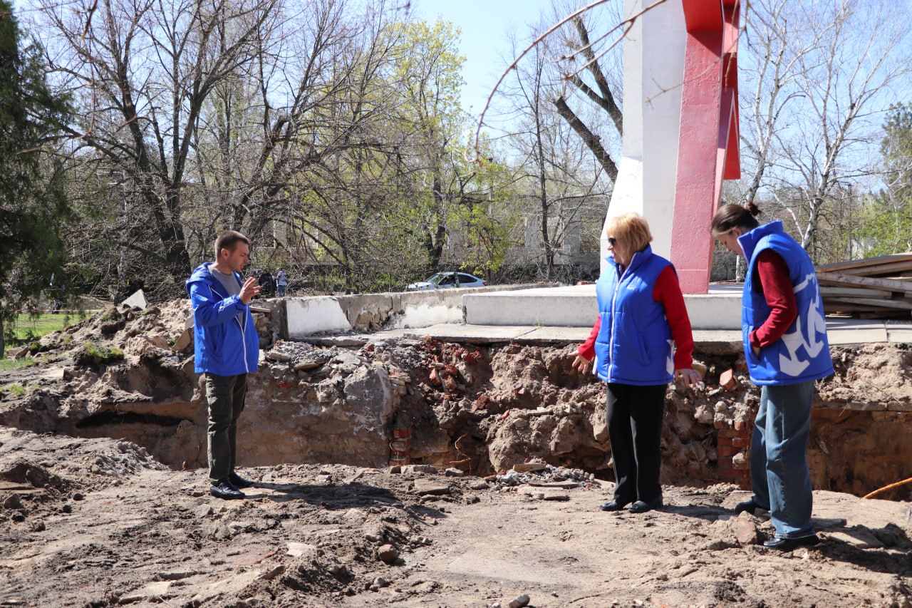 Единороссы Станично-Луганского муниципалитета проинспектировали ход капитального ремонта Сквера «Славы»