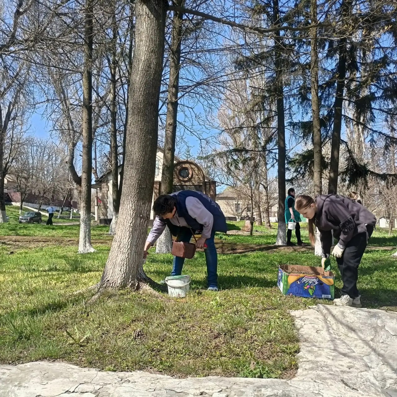 В ходе субботника произведена очистка бордюр, побелка деревьев по улице Ленина. Очищена от прошлогодней листвы и видимого мусора территория Братской могилы советских воинов и территория прилегающая к памятному знаку воинам-односельчанам, которые погибли в годы Великой Отечественной войны. Также произведена частичная побелка несущей стены Братской могилы.