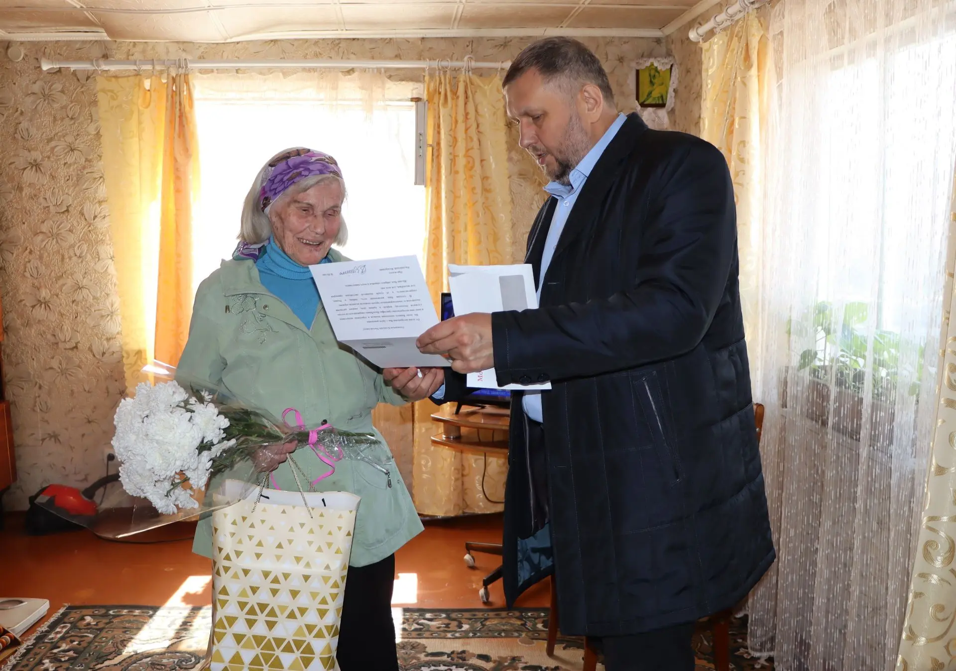 С глубоким уважением и искренним почтением Глава Лутугинского муниципального округа Евгений Бондарь поздравил Клавдию Михайловну Мукасееву из села Ореховка с её 95-летием.