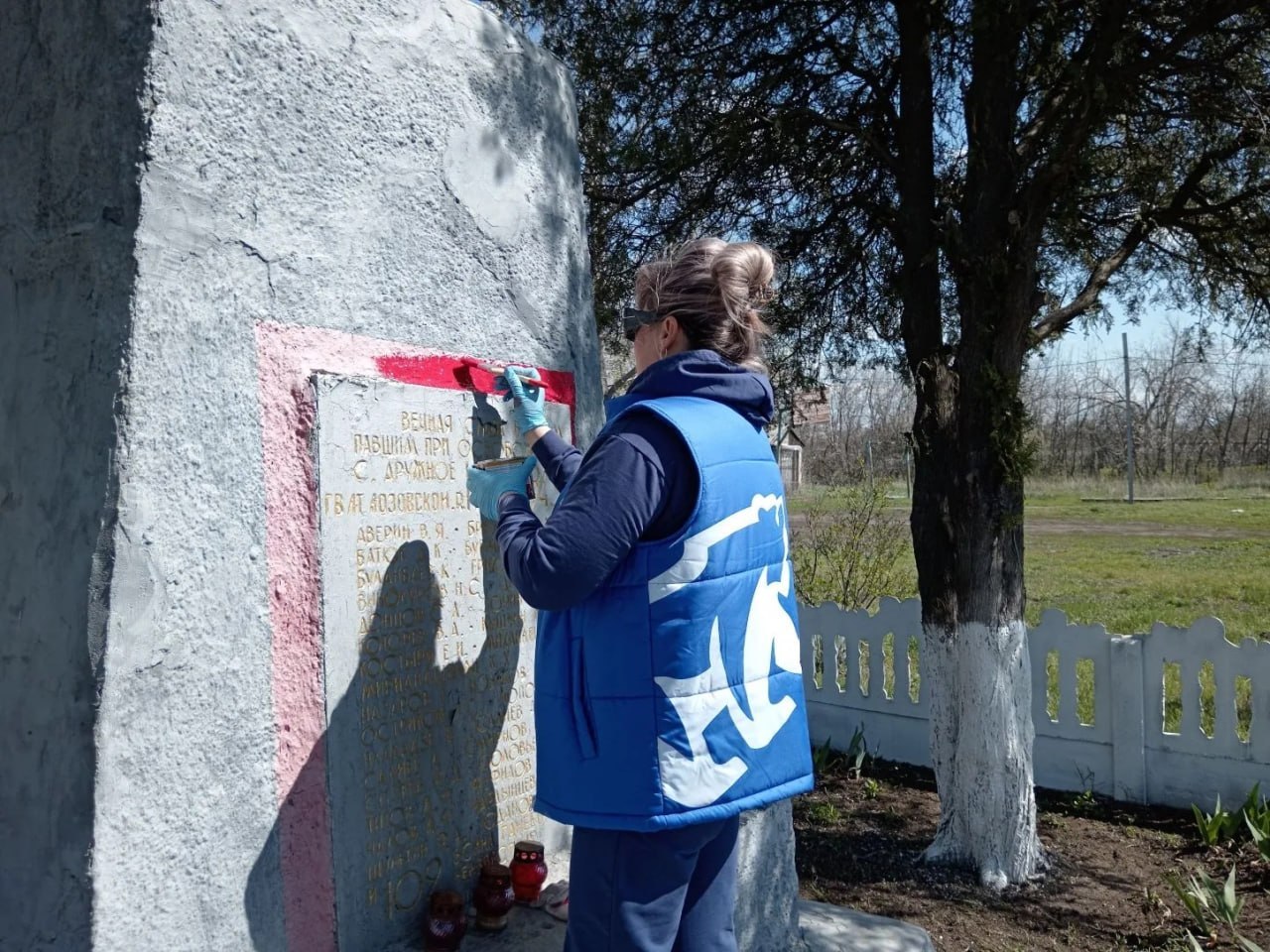 Сегодня сотрудники отдела по жизнеобеспечению пгт. Новосветловка, с. Белоскелеватое, с. Пархоменко, п. Хрящеватое, члены ВПП «Единая Россия» и неравнодушные жители благоустроили братскую могилу в селе Дружное.