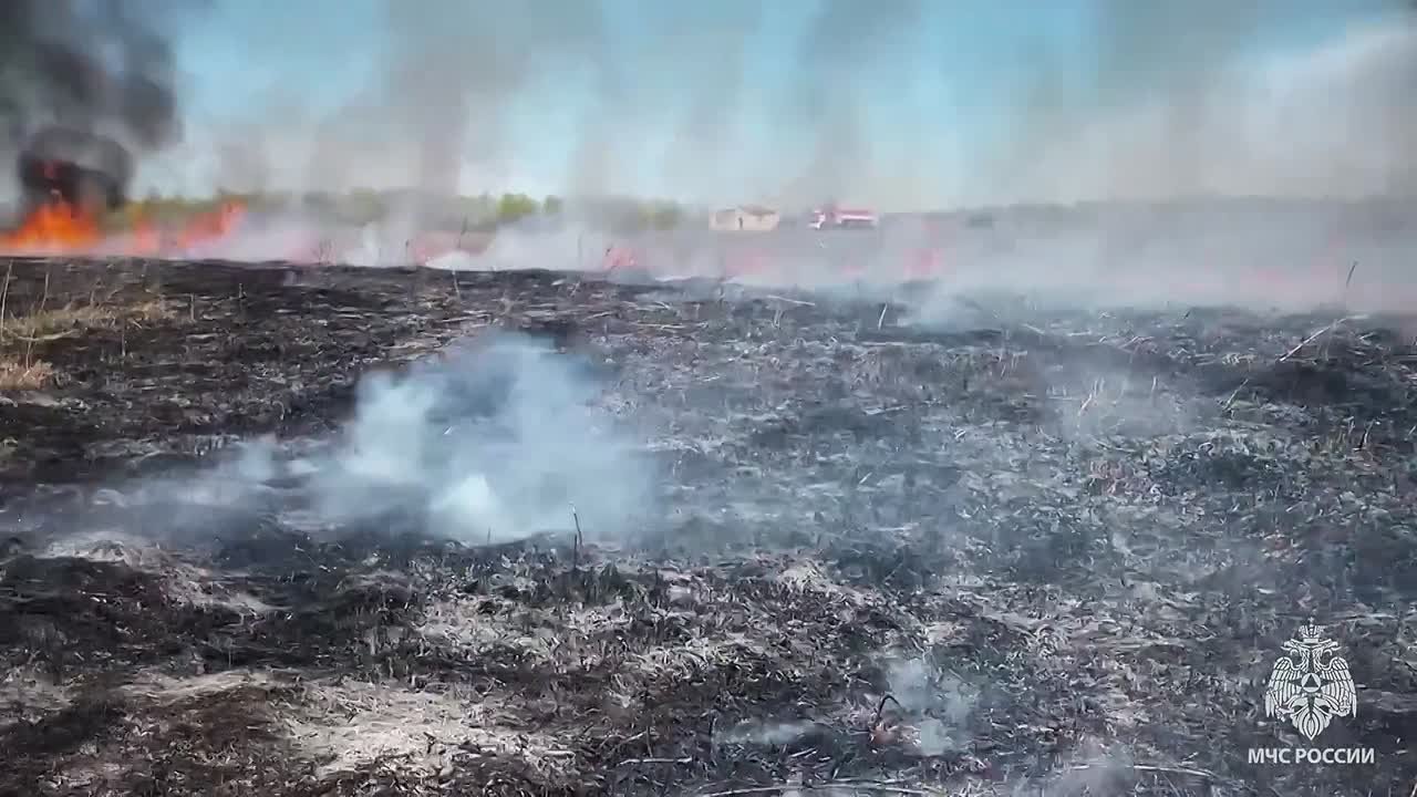 Загорелась сухая трава и камыш около села Болотенное. Пламя охватило 3,5 га территории.