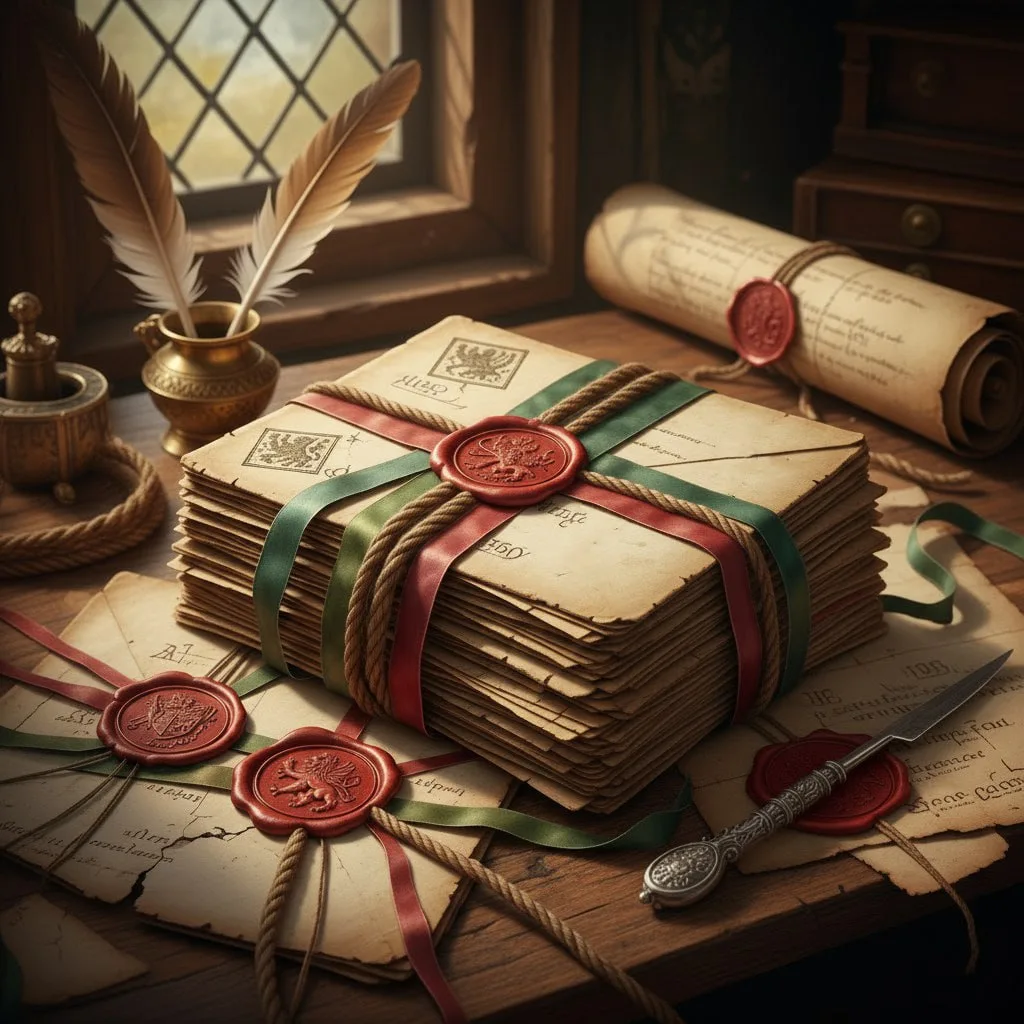 До появления марок письма перевязывали веревками или лентами и запечатывали сургучом.
