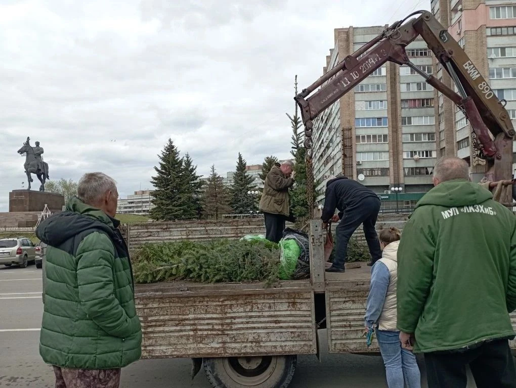 В центре города возле фонтана по улице Коцюбинского сегодня специалисты проводят высадку 8 хвойных деревьев.