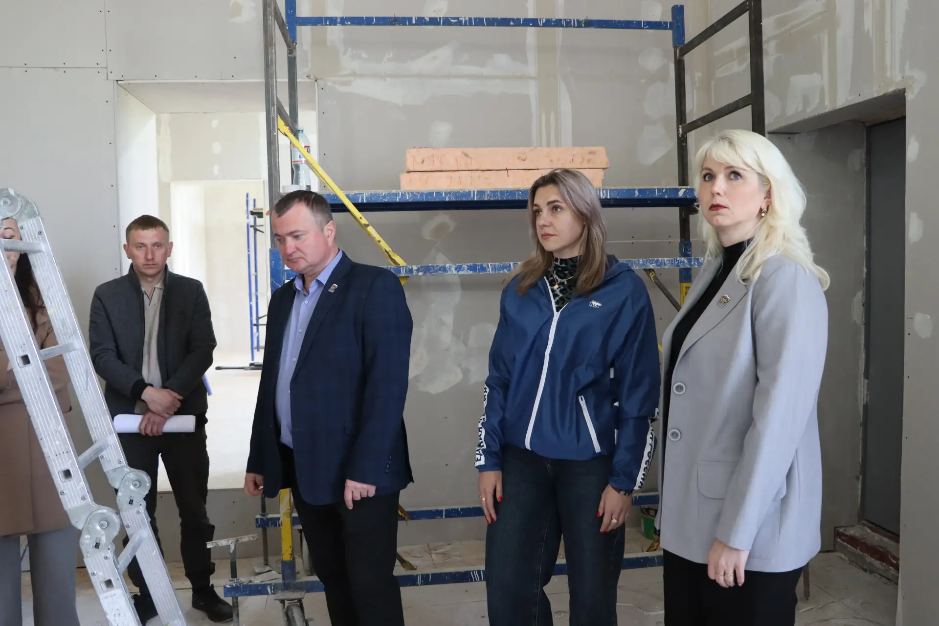 Первый заместитель главы городского округа Светлана Небесская и председатель Совета городского округа Юрий Нестеренко проинспектировали ход ремонтных работ в Городском центре культуры и досуга г. Ирмино. На данный момент обновление затронуло хореографический зал и костюмерную.