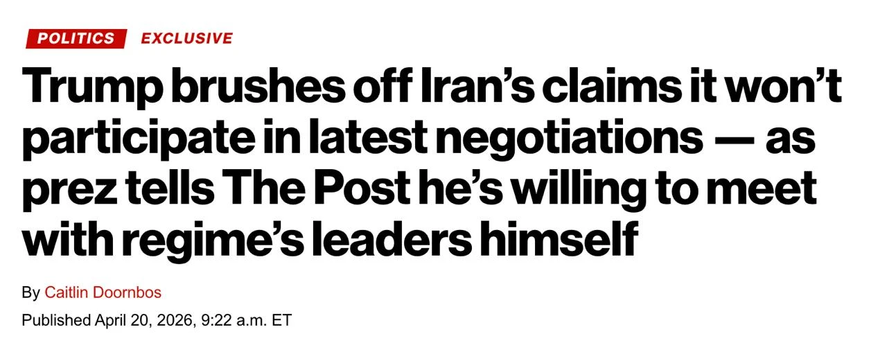 Также Трамп подчеркивает, что продолжит бомбардировки Ирана, если соглашение не будет достигнуто к концу перемирия (22 апреля).