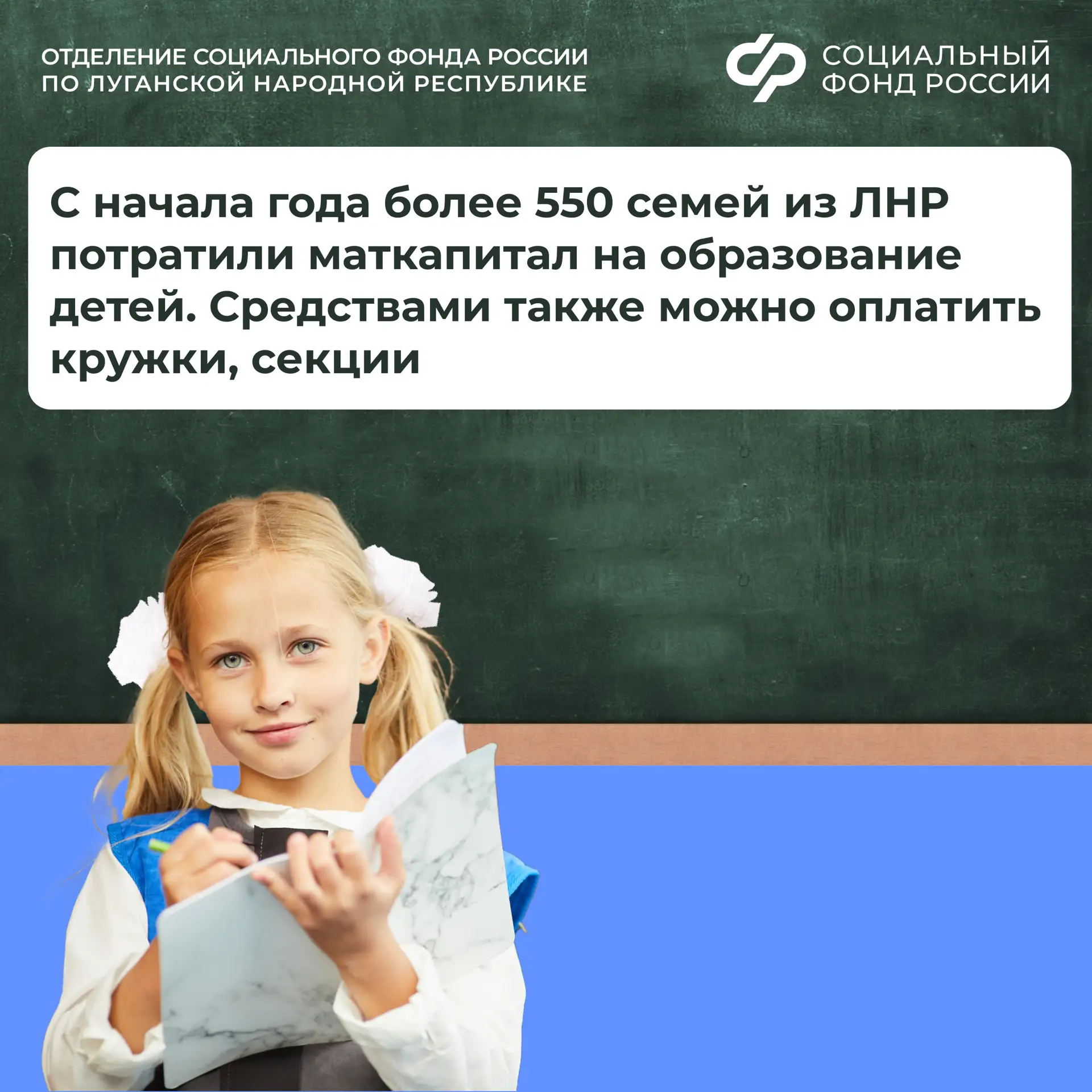 С начала года более 550 семей из ЛНР распорядились маткапиталом на образование детей.