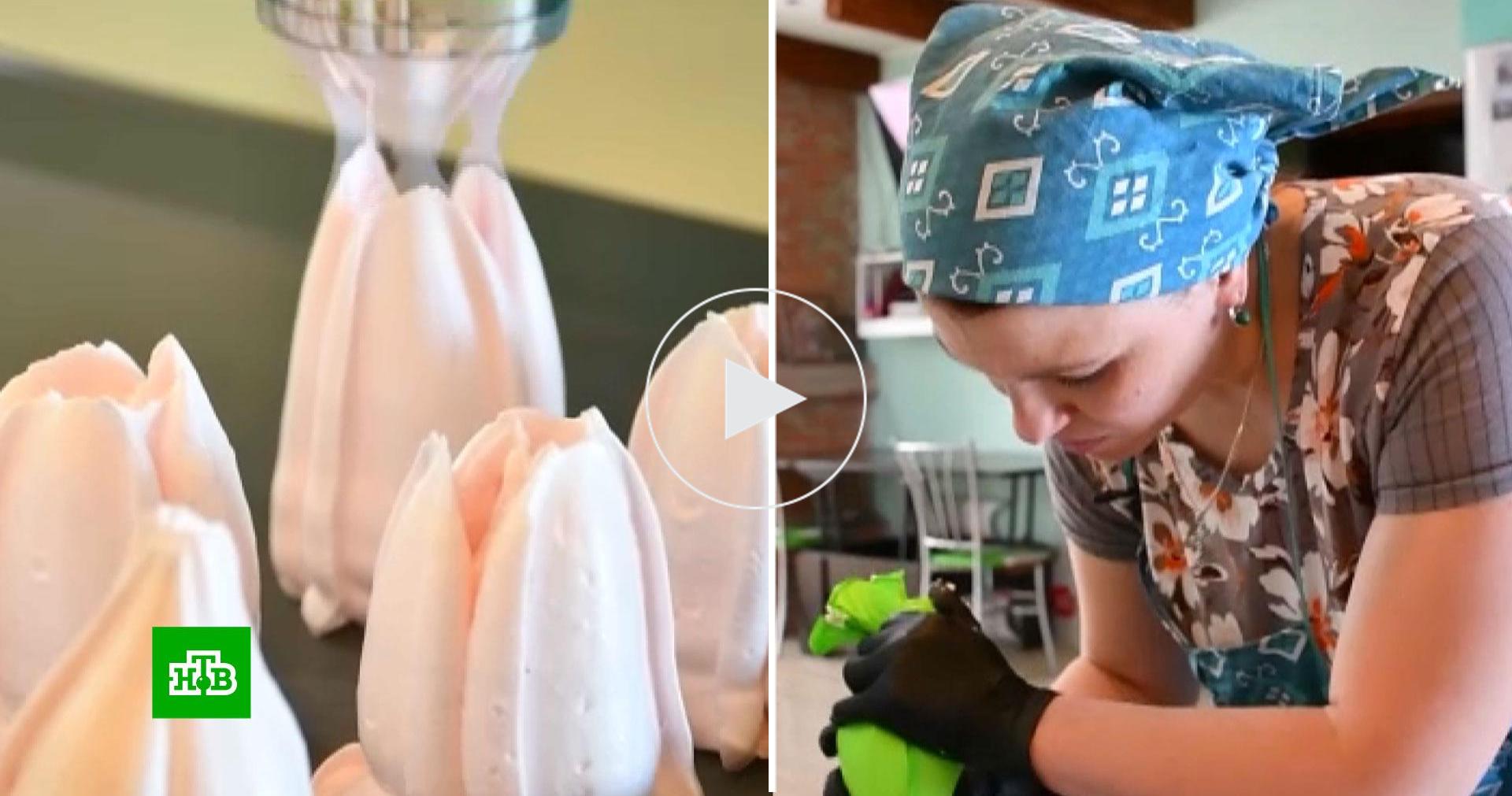 Ольга Крутова из Анжеро-Судженска собирает очередной заказ — букет тюльпанов. Каждый цветок съедобный, он сделан из зефира собственного производства. По профессии Ольга — специалист по охране труда, но сейчас она мама пятерых детей в декрете. По словам женщины, она открыла свое дело, чтобы разнообразить декрет, прошла обучение по программе «Мама-предприниматель» и инвестировала в домашнее производство 87 тысяч рублей. Все вложения давно окупились. Теперь для детей всегда есть что-то сладкое, а мама из наемного сотрудника выросла в индивидуального предпринимателя.