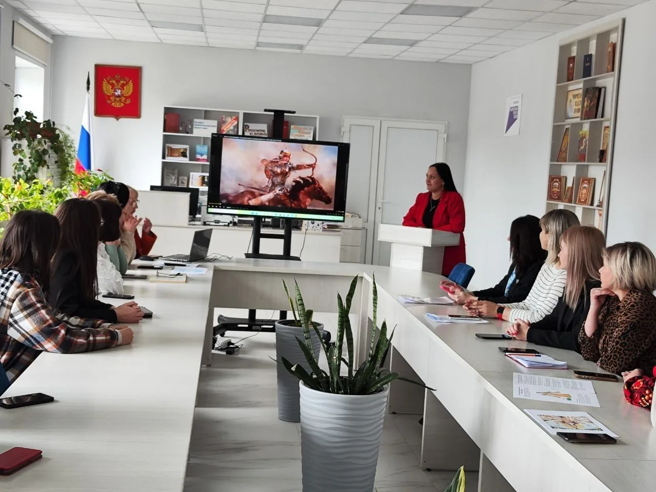 На мероприятии присутствовали: Екатерина Рубанцова - заместитель председателя Совета женщин города Ровеньки «Союза женщин России», Елена Шевченко - муниципальный посол культуры «Союза женщин России», работники клубных учреждений и библиотек города, активисты Молодежного совета при Администрации городского округа город Ровеньки, активисты общероссийского общественно — государственного движения детей и молодежи «Движение Первых» Луганской Народной Республики.