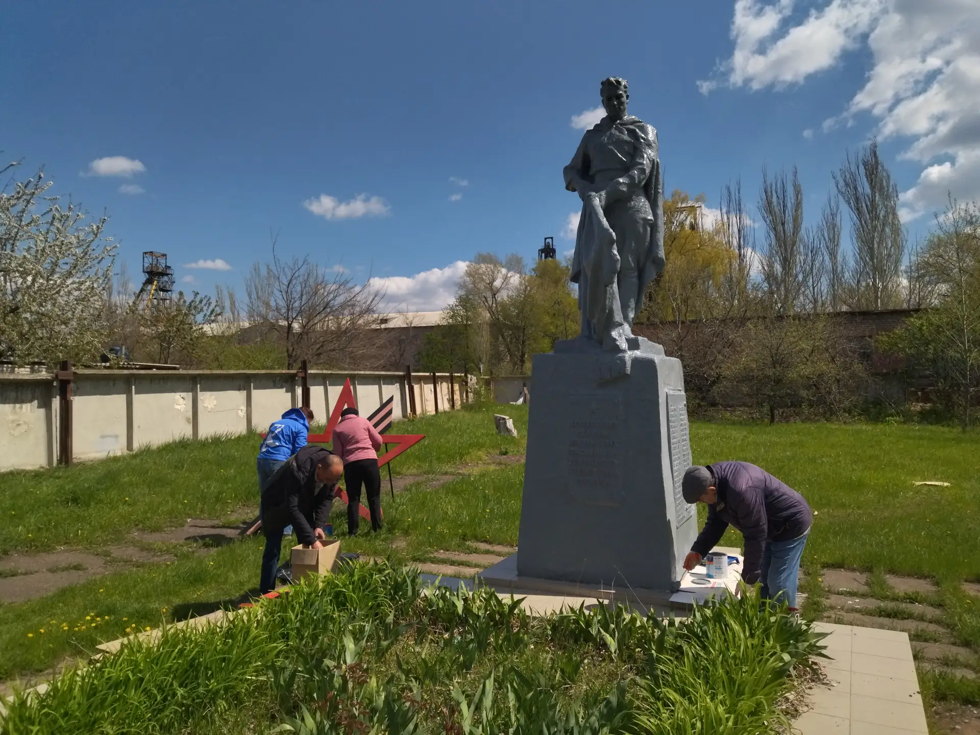 Для сохранения памятного места была выполнена важная работа — покраска пьедестала и букв на мемориальных досках, а также звезды с Георгиевской лентой.