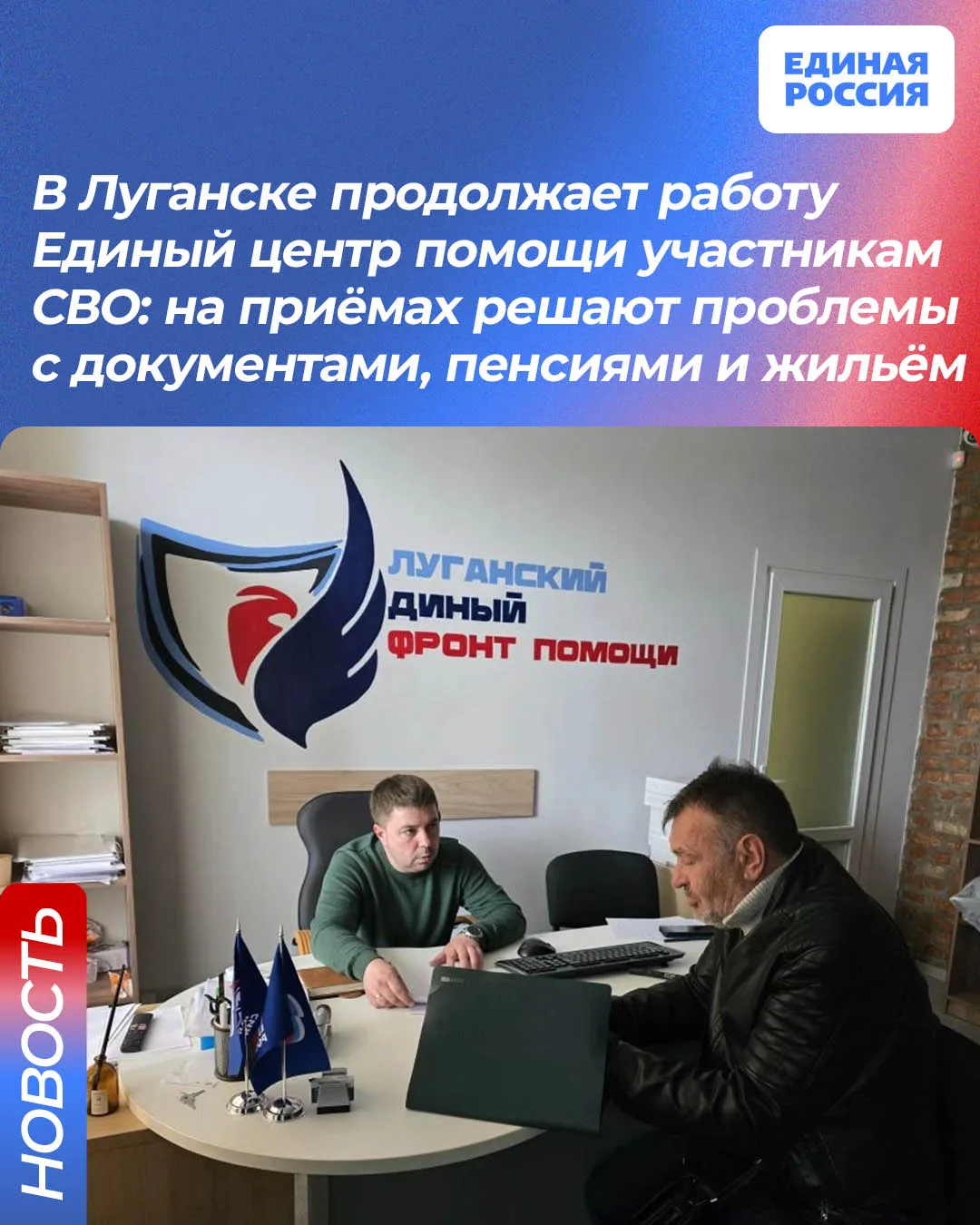 В Луганске на регулярной основе продолжаются приёмы граждан в «Едином центре помощи участникам СВО». С начала апреля здесь уже прошло несколько приёмных дней: первые состоялись 16 и 17 апреля, затем — 21, 22 и 23 апреля.