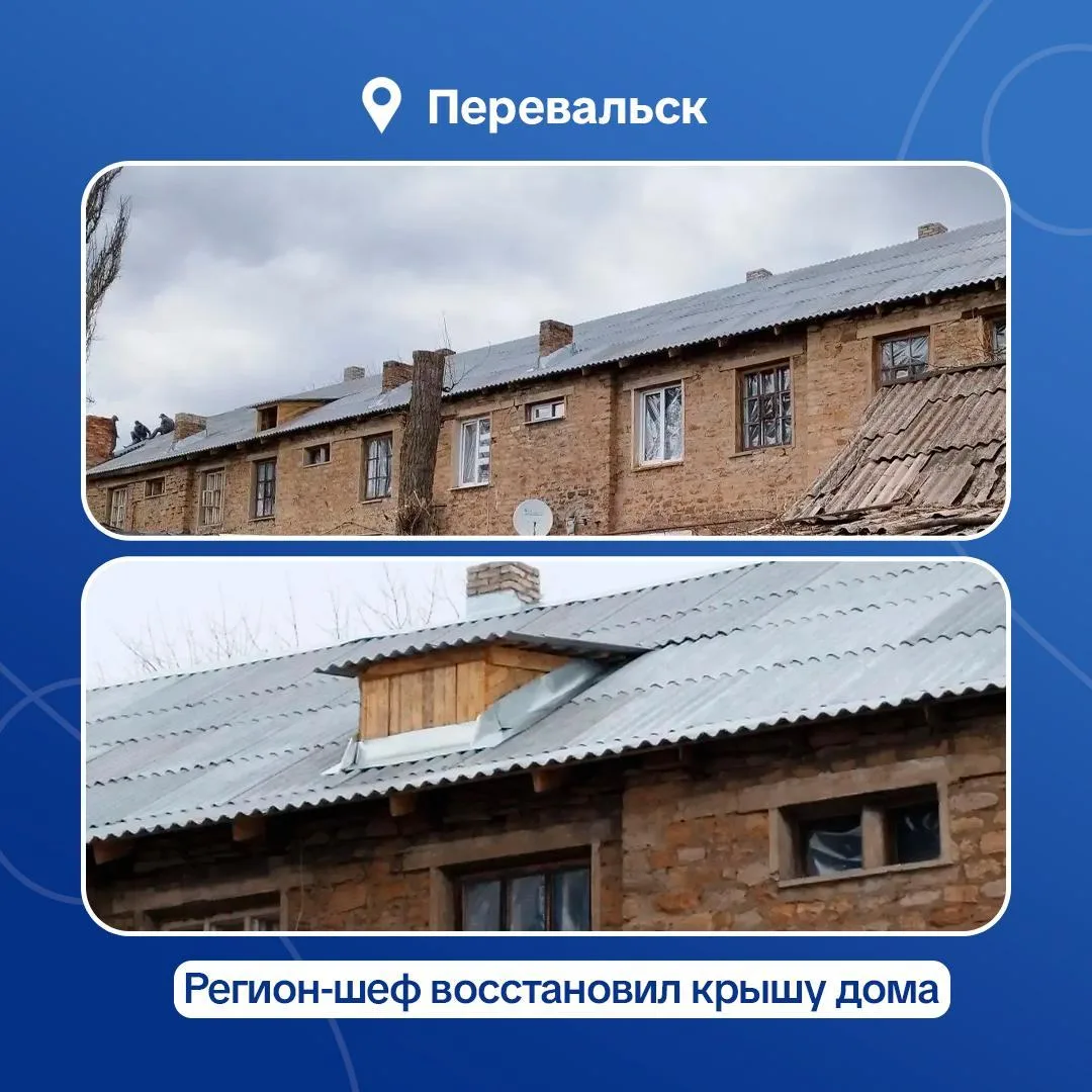 восстановление дома по ул. Победы, 41. Крыша здания пострадала от атаки вражеского беспилотника.