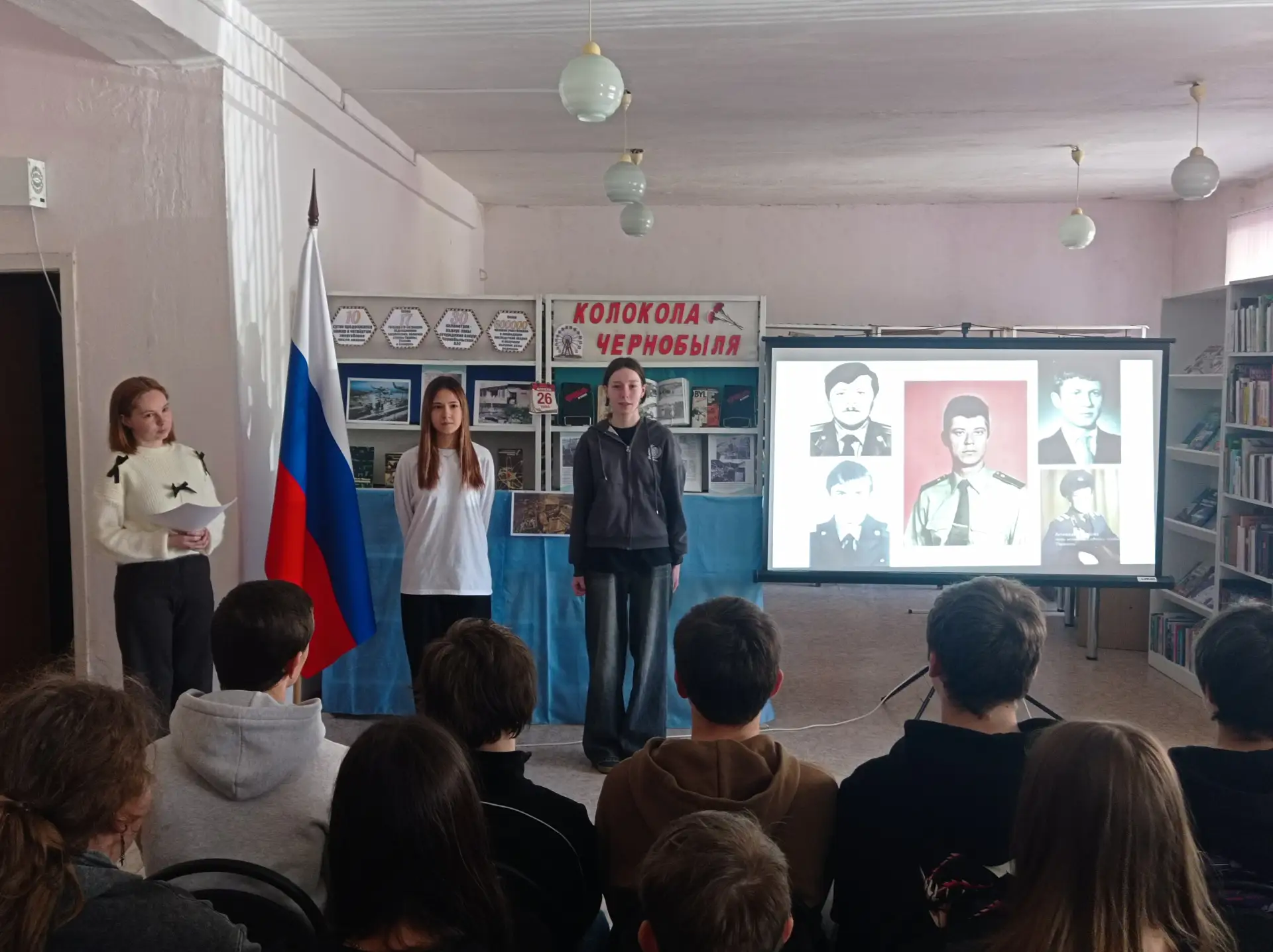 Библиотекарь рассказала школьникам о том, что происходило в первые минуты после взрыва: как прозвучали аварийные сигналы, что происходило внутри станции, как персонал и пожарные столкнулись с невидимой угрозой радиации. Особое внимание было уделено первым 28 пожарным, среди которых – Л. Телятников, В. Кибенок, В. Правик. Дети узнали о мужестве и самоотверженности этих людей и о том, какой ценой им удалось предотвратить ещё большую беду.
