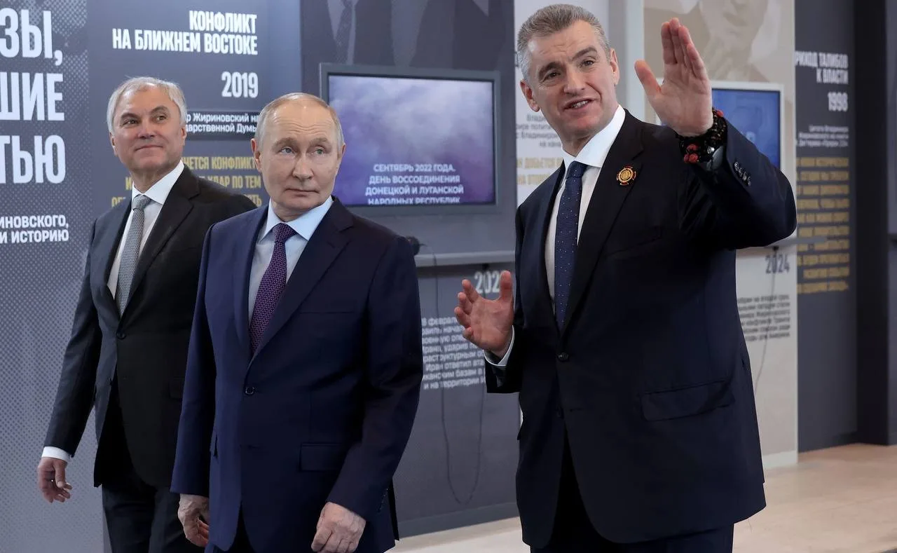 Президент Владимир Путин посетил выставку «Жириновский. Продолжение. ЛДПР»