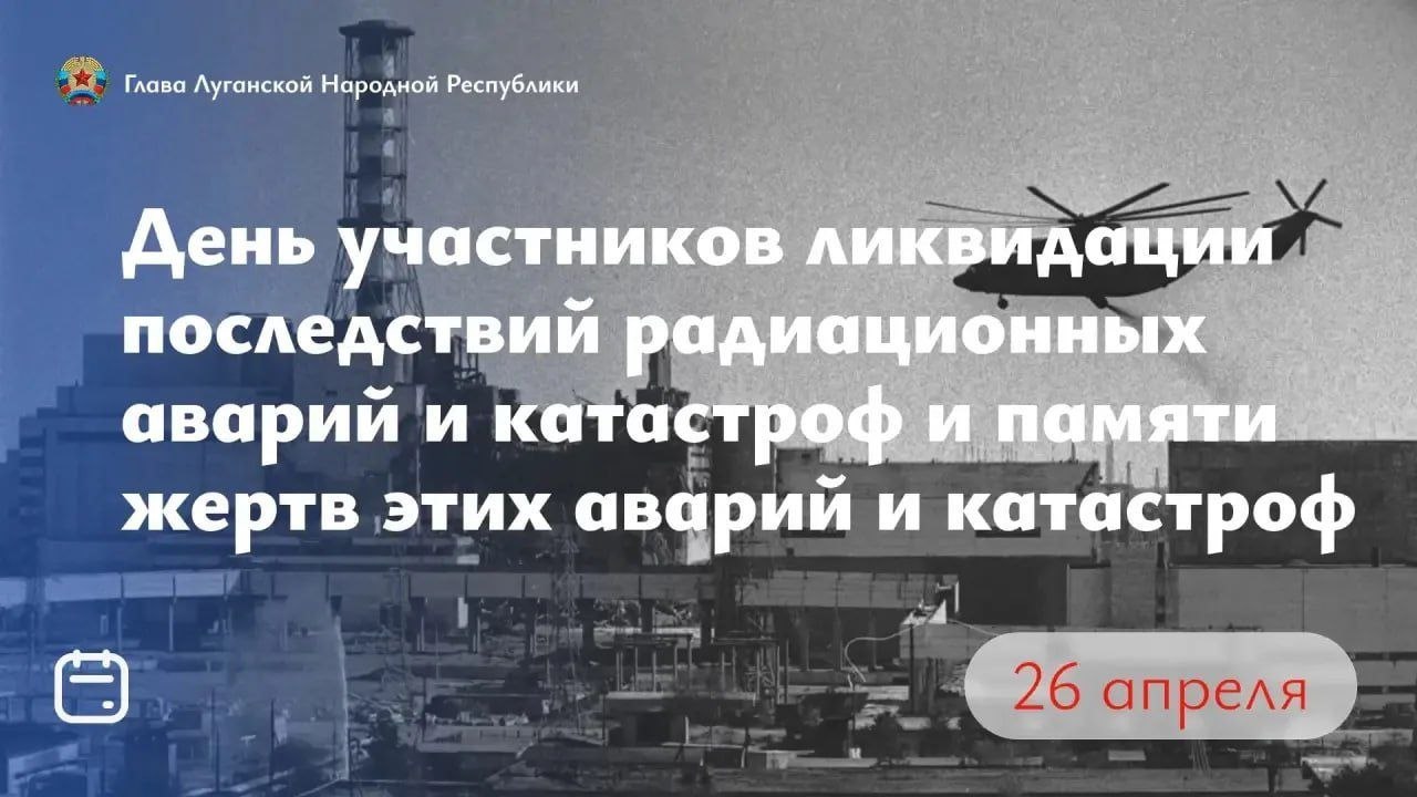 Глава ЛНР Леонид Пасечник обратился к жителям по случаю 40-годовщины со дня аварии на ЧАЭС