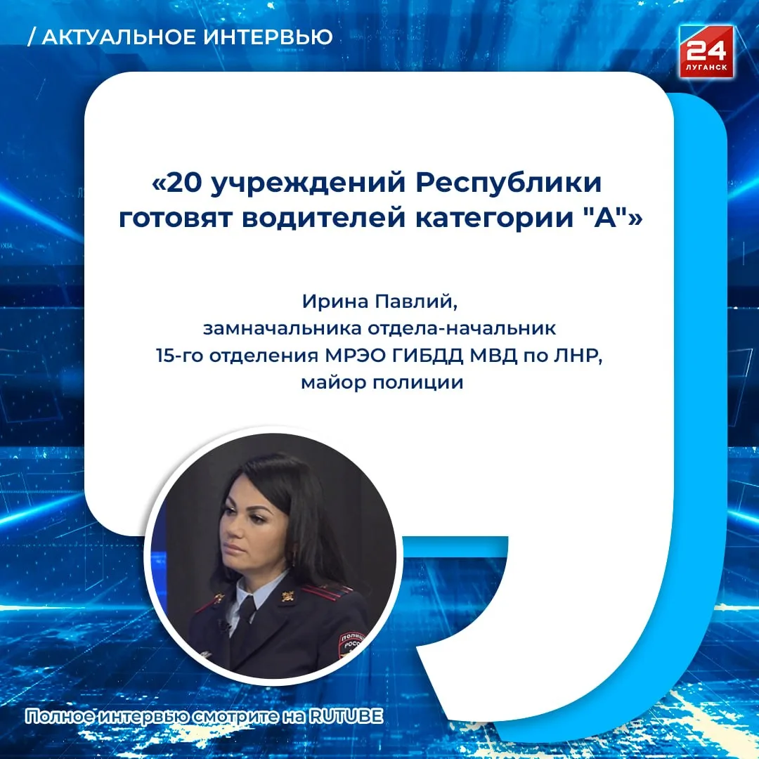 На все ключевые вопросы в студии программы «Актуальное интервью» ответила Ирина Павлий, замначальника отдела-начальник 15-го отделения МРЭО ГИБДД МВД по ЛНР, майор полиции.