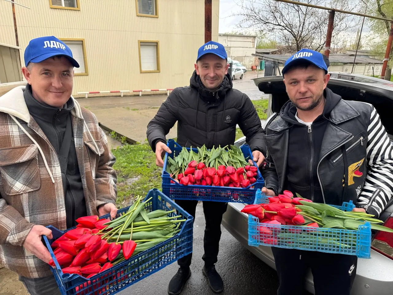 С необычной инициативой выступили активисты ЛДПР Кирилл Обухов и Сергей Солдатенко. Они привезли цветы с дачного участка и вместе с однопартийцами решили подарить их женщинам города.