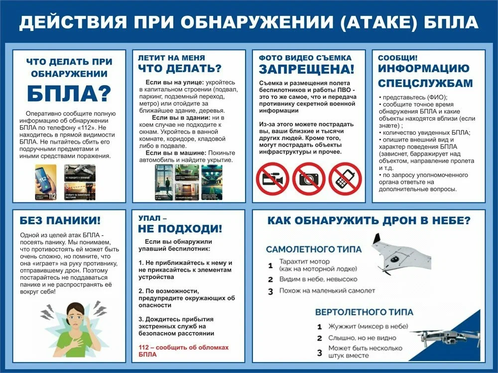 Напоминаем вам правила поведения при обнаружении беспилотных летательных аппаратов.