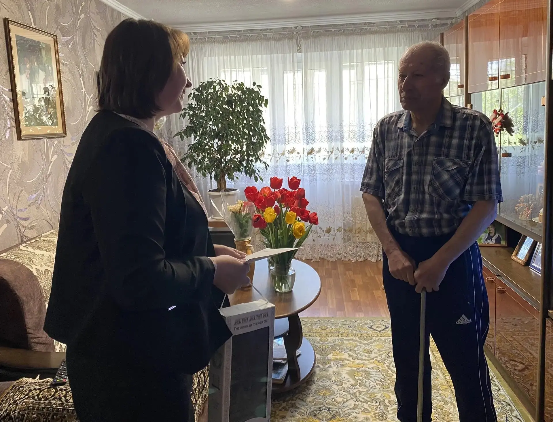 Заместитель главы местной Администрации Елена Беседина навестила Петра Коломийца и вручила ему персональное поздравление с 82летием от Президента Российской Федерации Владимира Путина.