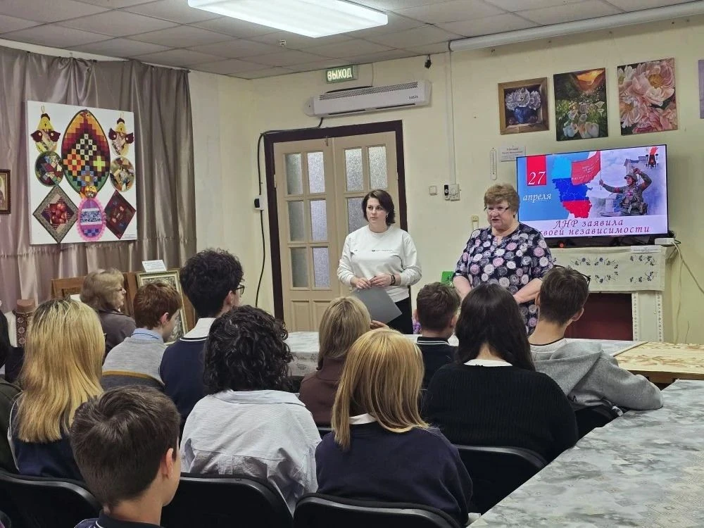 27 апреля сотрудники музея провели тематический час, приуроченный провозглашению ЛНР для учеников ГБОУ ЛНР Краснолучская гимназия №1 им. Л.Литвяк.