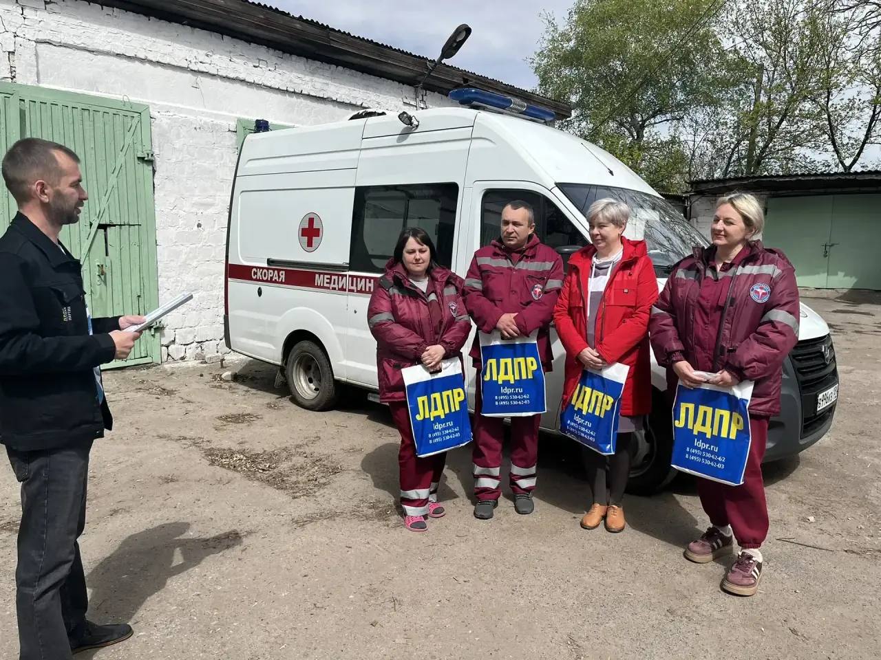 В рамках поздравления медикам были вручены благодарственные письма от координатора Луганского регионального отделения ЛДПР Максима Уварова.