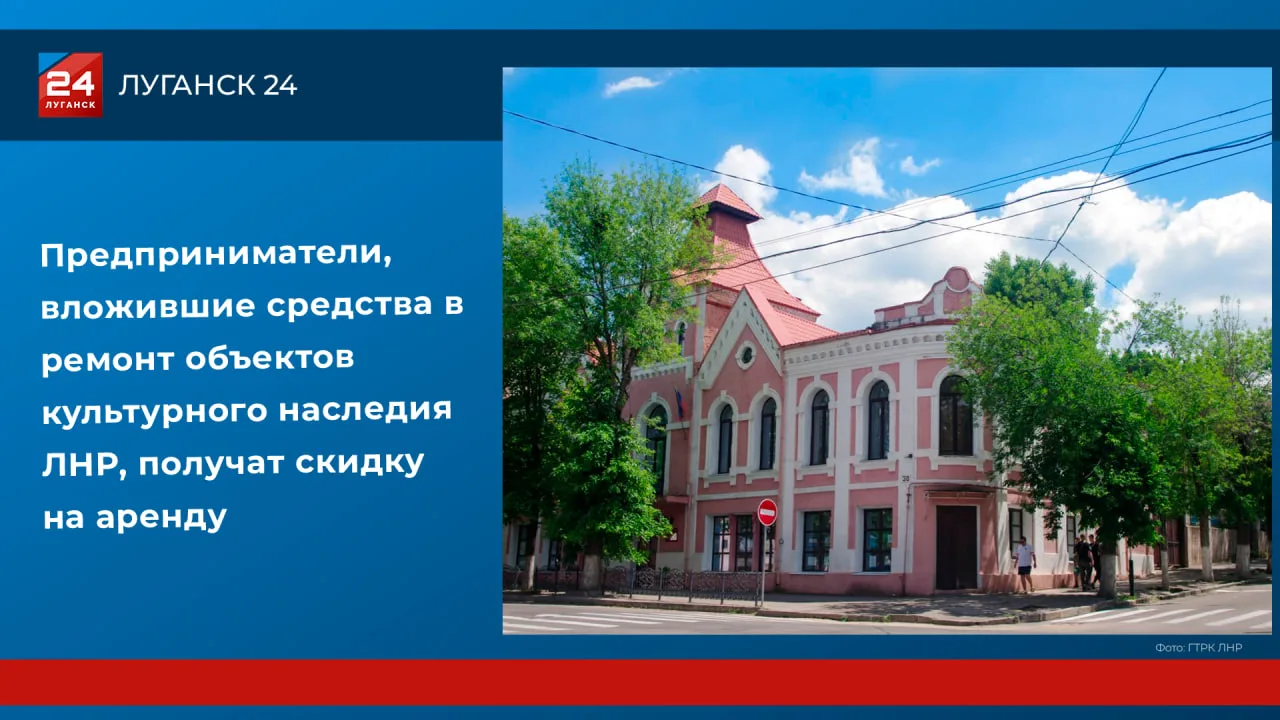 Предприниматели, вложившие средства в ремонт объектов культурного наследия ЛНР, получат скидку на аренду