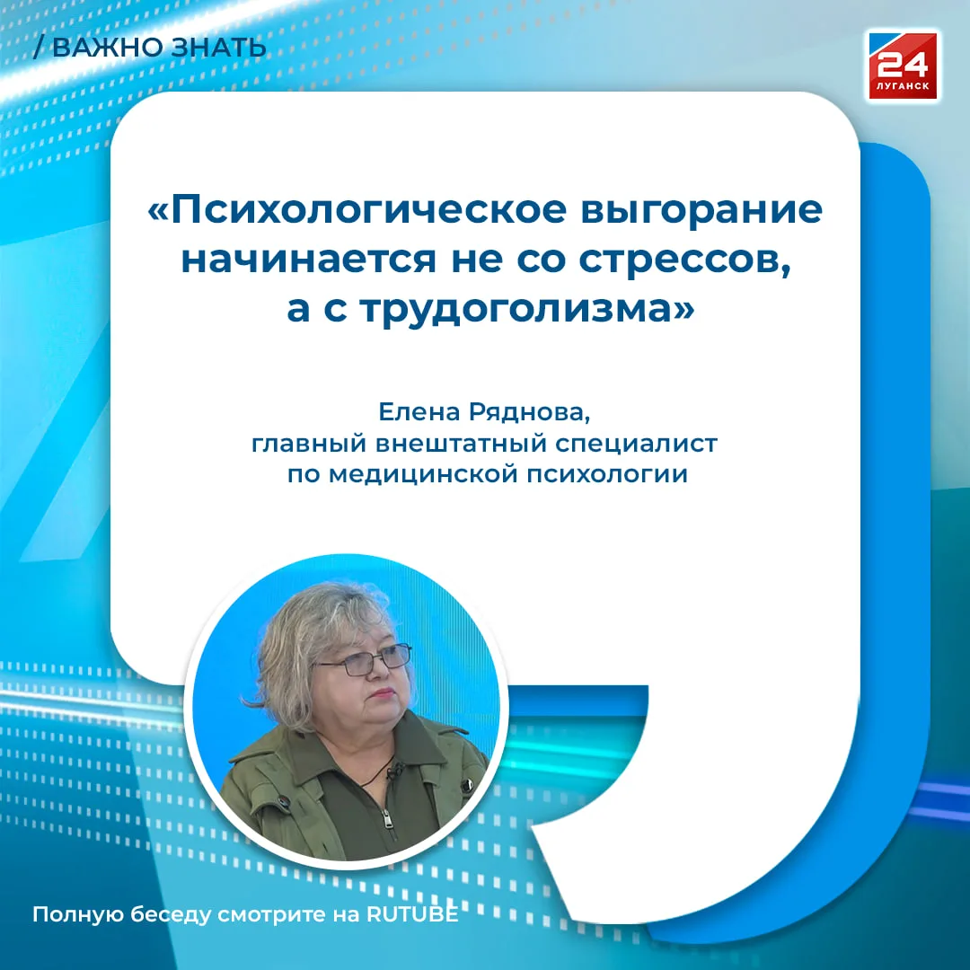 «Выгорание начинается, когда человек начинает относиться к своей профессии как к основному разделу своей жизни». Такое мнение выразила гость программы «Важно знать» Елена Ряднова, главный внештатный специалист по медицинской психологии.
