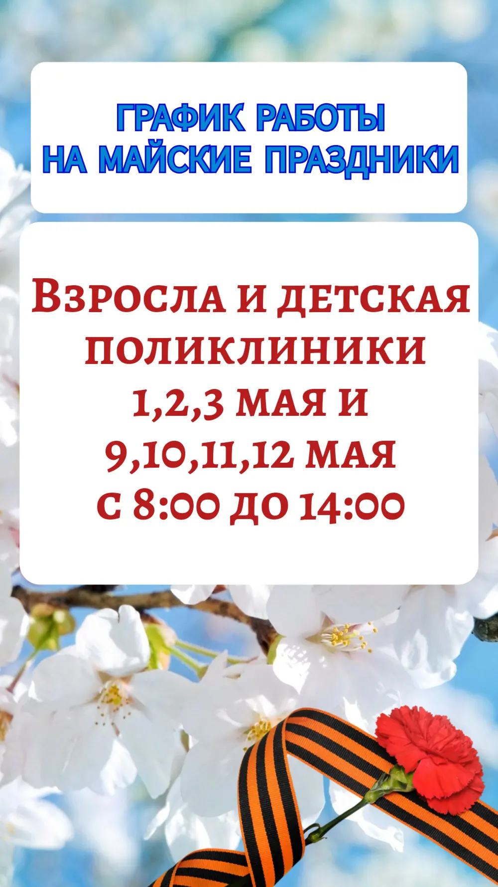 Обратите внимание на график работы поликлиник г. Брянка в майские праздники 2026 года: