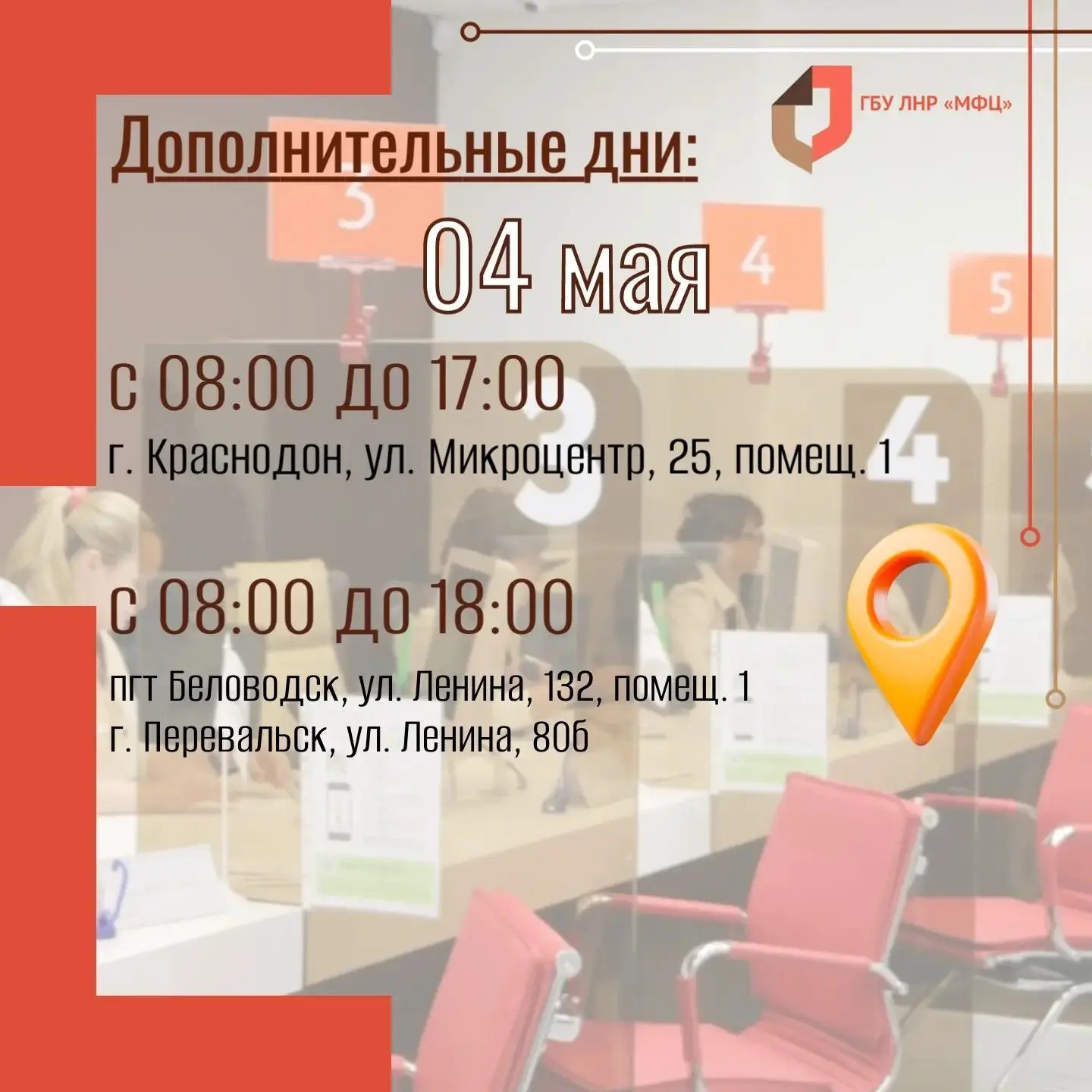 Кроме того, в пяти офисах МФЦ ЛНР увеличено количество окон приёма документов