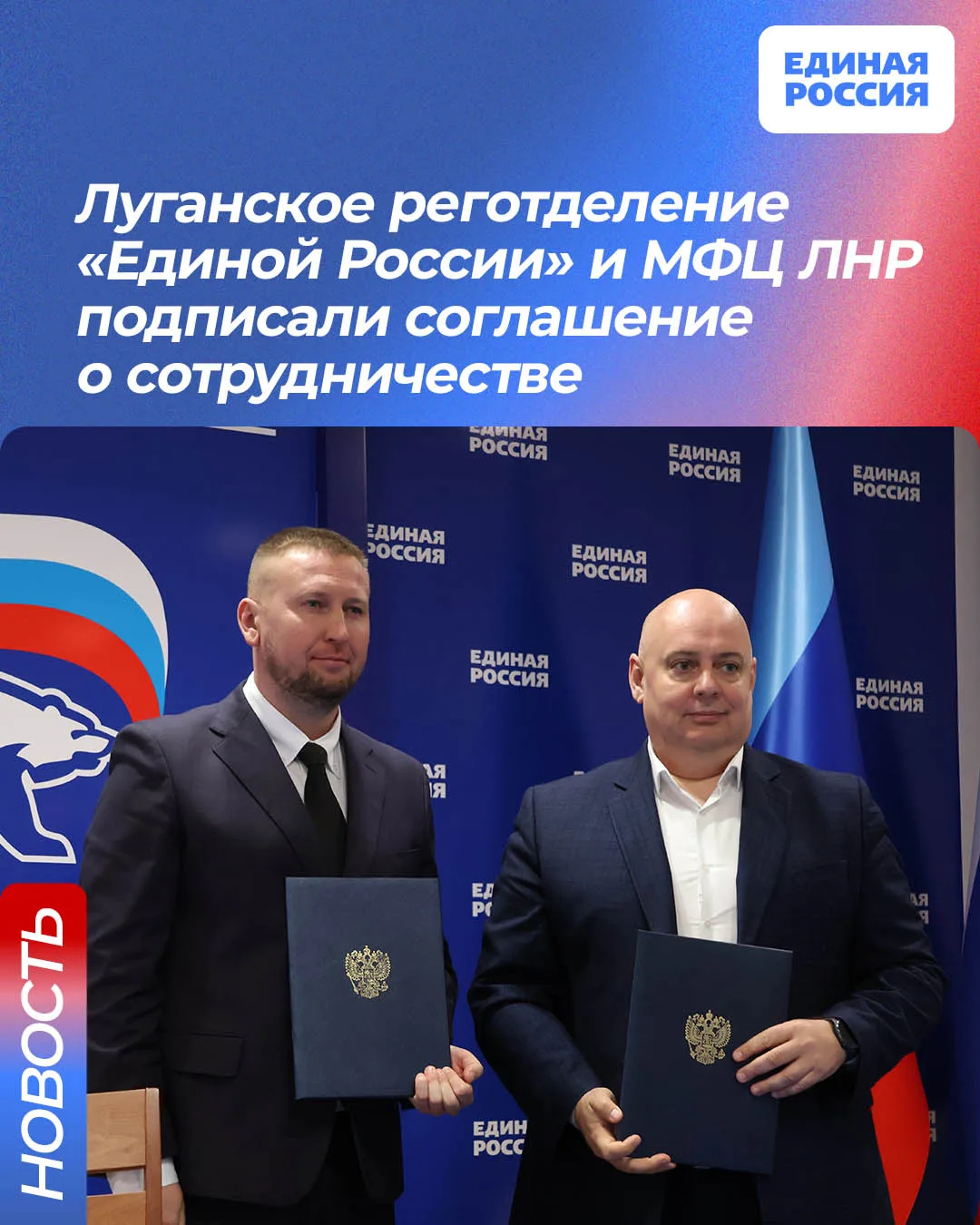 Луганское региональное отделение партии «Единая Россия» и ГБУ ЛНР «Многофункциональный центр предоставления государственных и муниципальных услуг» 30 апреля заключили соглашение о сотрудничестве.