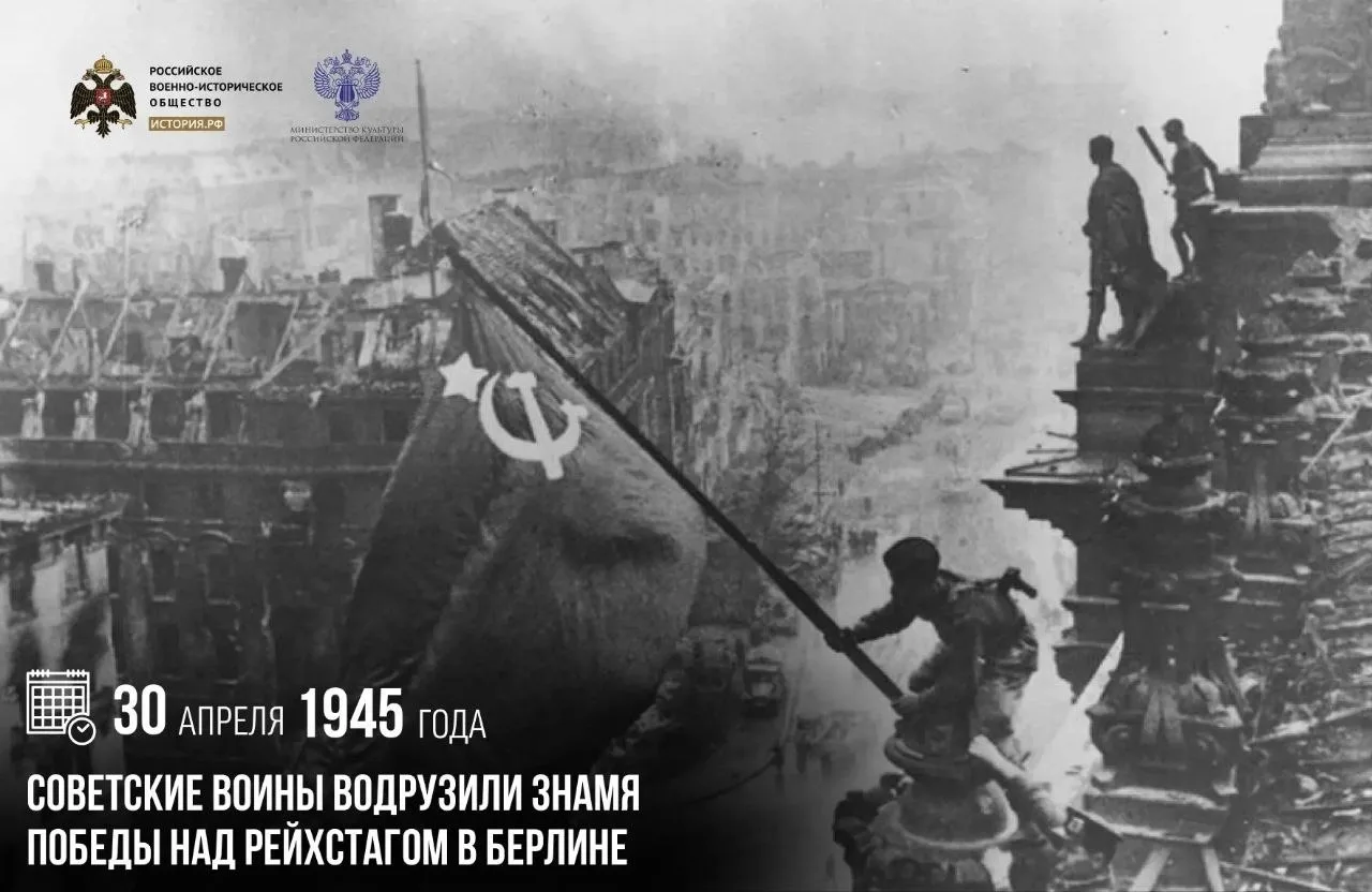 30 апреля 1945 года советские воины водрузили Знамя Победы над Рейхстагом в Берлине
