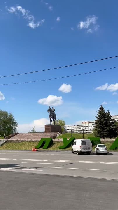 Возле памятника Ворошилову появились большие зелёные буквы «ЛУГАНСК».